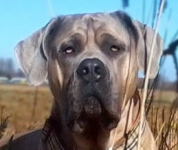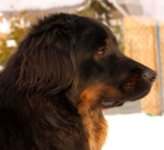 | Hovawart (Maske auf Abzeichen) | Antikdogge (dilute Maske) |