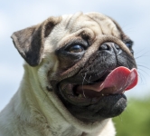Das M steht für Maske. Eine dunkle Maske kommt bei vielen Hunderassen vor, bekannt sind vor allem Molosser mit ihren meist schwarzen Masken. Eine Maske besitzt immer die Grundfarbe des Hundes. Sie kann also schwarz oder braun sein, wenn der Hund reinerbig für ‚d‘ (Dilute) ist, dann kann die Maske auch blau oder isabellfarben sein. Bei Rassen mit Merlezeichnung, kann eine Maske sich durch schwarze Flecken zeigen. Masken überdecken die Grundfarbe und sind vor allem auf Hunden gut zu sehen die sable (zobel-farben) sind. Hunde mit der genetischen Ausstattung ‚ee‘ können keine Maske zeigen, da sie kein Eumelanin (dunkles Pigment) im Haar einlagern können.
