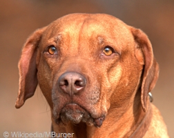 Beispiel Rhodesian Ridgeback: Hier sieht man sehr schön, dass der Hund trotz einer optisch braunen Fellfarbe eine schwarze Grundfarbe haben kann. Rhodesian Ridgebacks gibt es aber auch in brauner Grundfarbe. Unterscheiden kann man sie sehr schön an der Farbe der Nase und den Augenumrandungen: