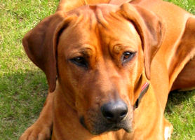 | Rhodesian Ridgeback mit schwarzer Grundfarbe | Rhodesian Ridgeback mit brauner Grundfarbe |