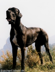 | Dogge in schwarz (‚DD‘ oder ‚Dd‘) | Dogge in blau (‚dd‘) |
