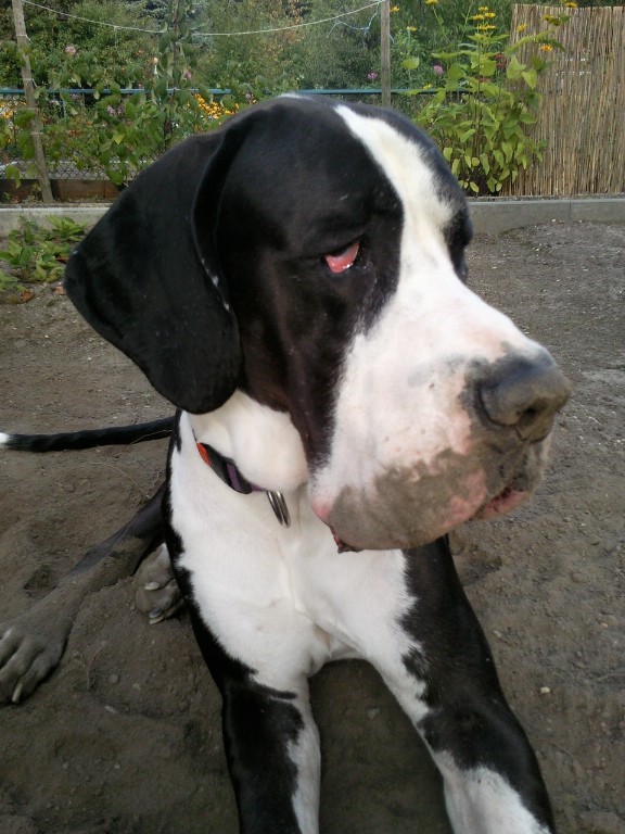 Wir haben auch eine Deutsche DOGGE sie heißt BABY und sie wird 6 Jahre und sie ist pechschwarz und die liebste , treuste, verspielteste und tollste Hündin , die man sich nur wünschen kann!!!:)