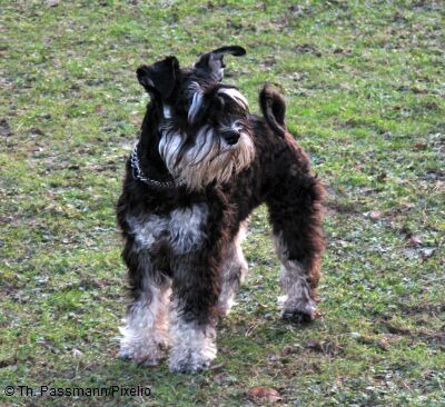Schwarz mit rotbraunen, braunen, gelben bis hellgelben Abzeichen. Einfarbig schwarz und grau-schwarz.