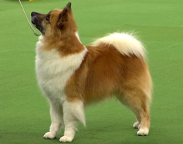 Verschiedene Nuancen von rotbraun bis orange. Befederung und Unterseite der Rute etwas Heller. Weiße Abzeichen an Brust, Pfoten, Rutenspitze oder Nase. Die Färbung der Nase, Lefzen und Augenlider sollten fleischfarben, passend zur Fellfarbe sein oder schwarz.