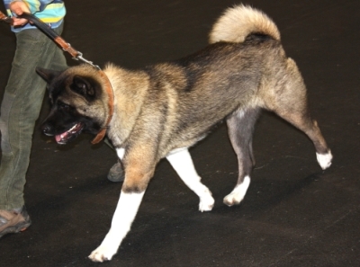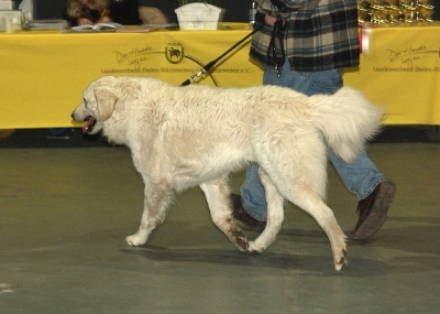 Im Ring werden die Hunde unter anderem im Trab vorgeführt, damit das Gangwerk beurteilt werden kann. Der Hund sollte es also gewöhnt sein an lockerer Leine zu laufen, ohne zu ziehen. Im Ring wird der Hund stets links geführt! Das lockere laufen im Trab sollte vorher geübt werden, so dass auch der Halter das richtige Tempo für seinen Hund kennenlernt, in dem er schön traben kann.