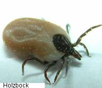 Auch der Holzbock kann gefährliche Krankheiten übertragen, die sowohl für den Hund als auch für den Menschen gefährlich werden können. Der Gemeine Holzbock ist unter anderem Überträger der Lyme-Borreliose und der Frühsommer-Meningoenzephalitis (FSME). Wie hoch in einzelnen Teilen Deutschlands das Risiko für FSME durch Zecken ist, können Sie hier auf einer Karte abrufen: Zeckenkarte. Üblicherweise ist der Süden stärker gefährdet als der Norden.