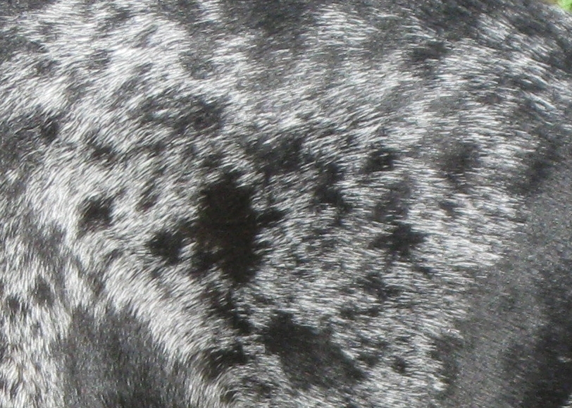 Es dürfen auf keinen Fall zwei Merle verpaart werden, da dies zu schwersten Missbildungen führen kann.